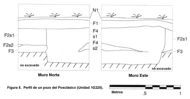 Pozo del Posclásico (10YR 4/3, légamo arenoso de arcilla). |